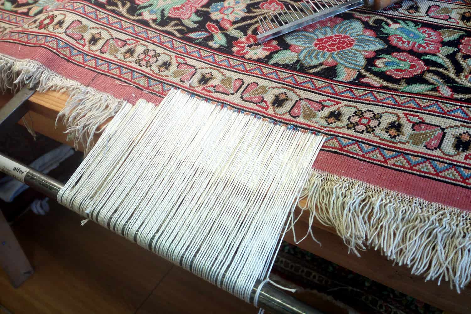 La ricostruzione delle frange consiste appunto nel rifacimento di queste parti che adornano i tappeti.